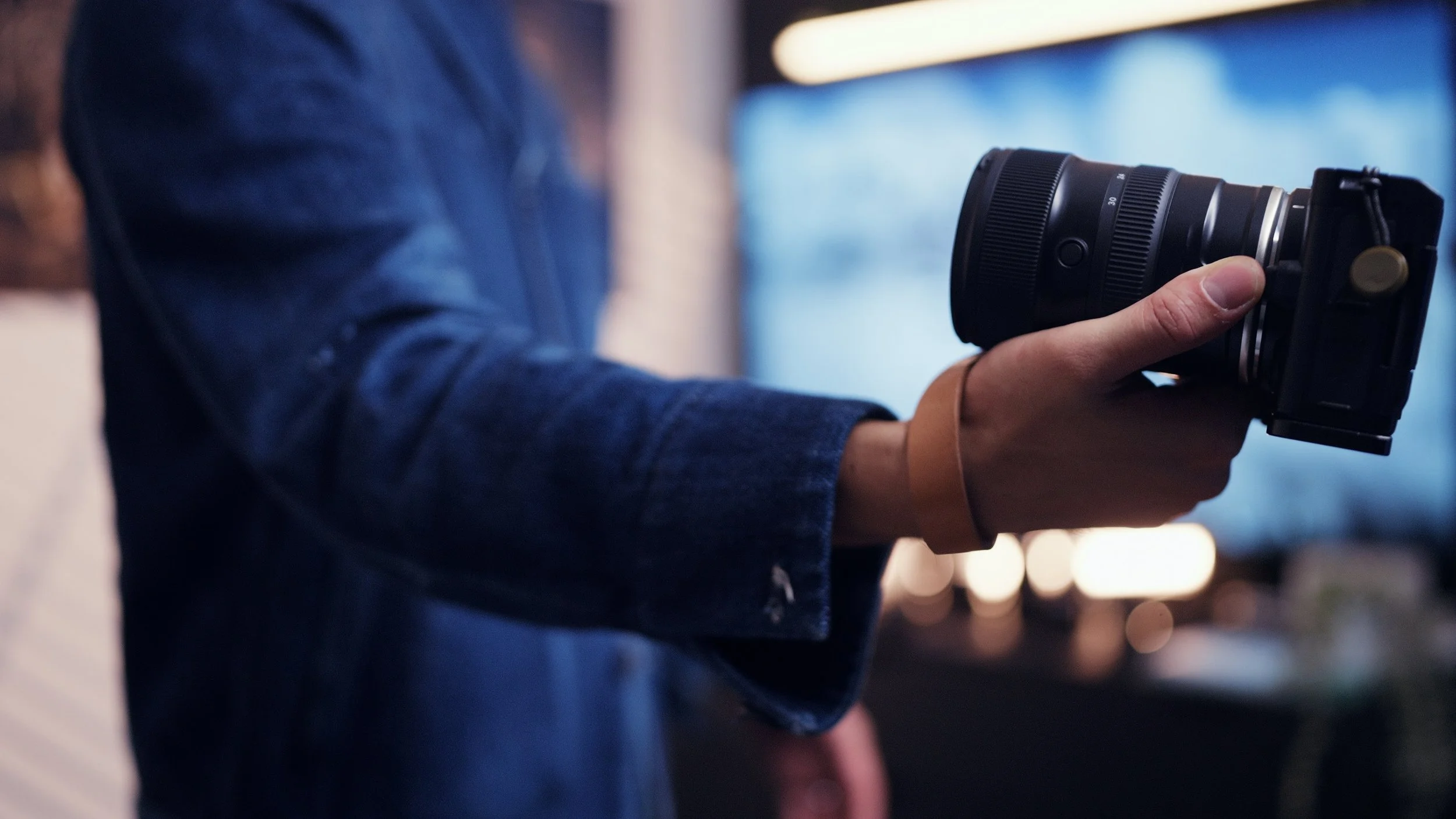 This Tamron lens is a full-frame zoom, bright f2.8 aperture, a new design with great autofocus motors and internal zoom. 16mm on the wide end for hand-held video, 30mm for tighter shots.
