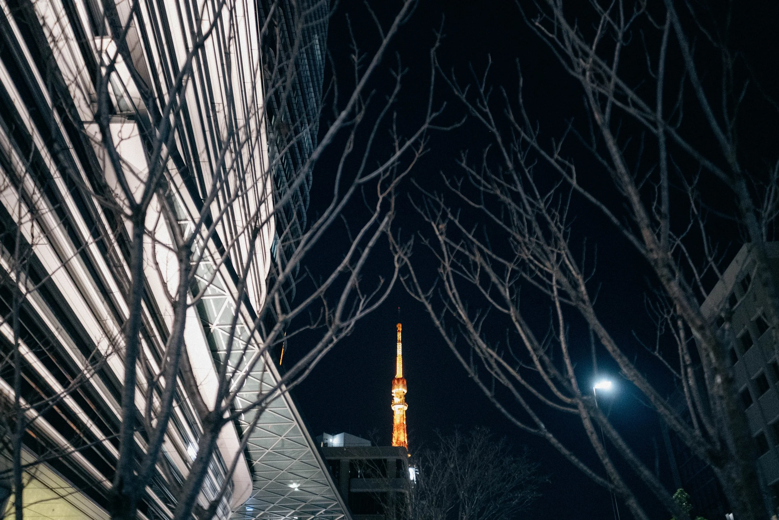 I could see Tokyo tower looming in the distance. The width of 28mm helped me frame this shot flanked by trees on either side.