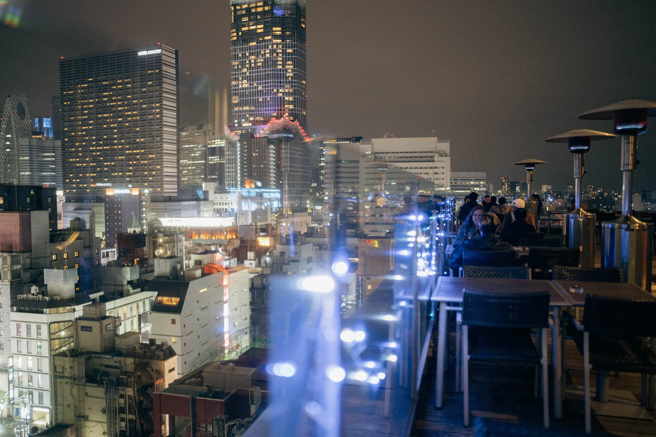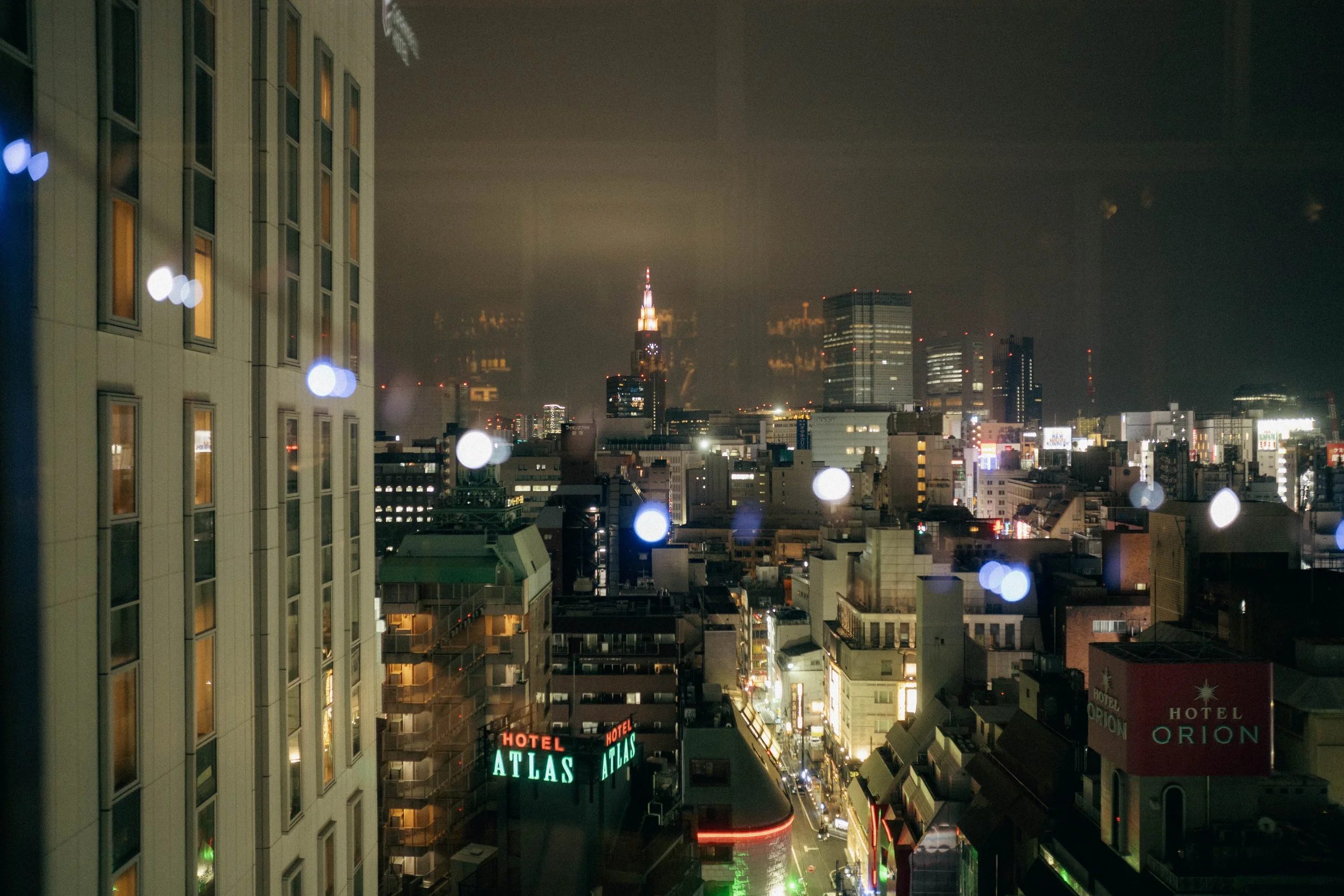 A rooftop hotel bar I’d never been to, with a view of the city, Kodomo tower, pedestrians and cars moving in and around Kabukicho, Shinjuku’s red light district, a basic trick to try when I’m not feeling in it.