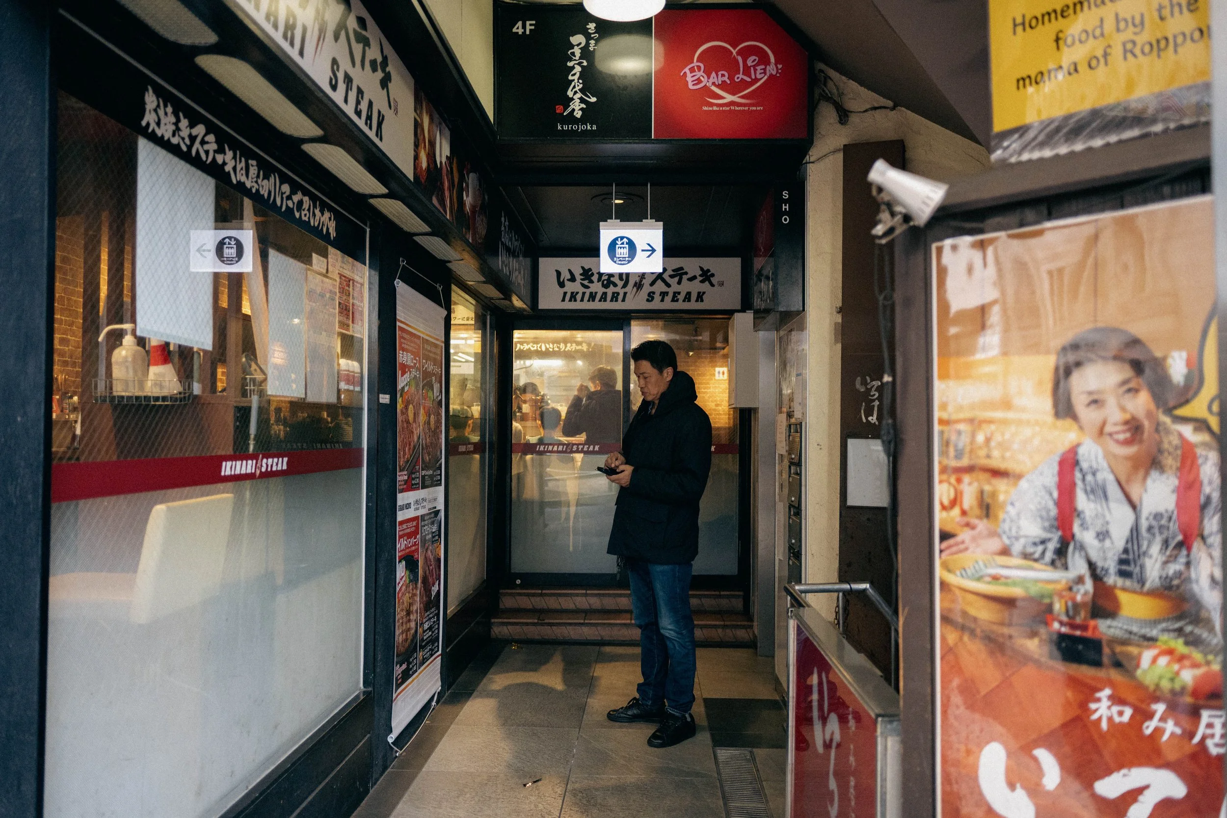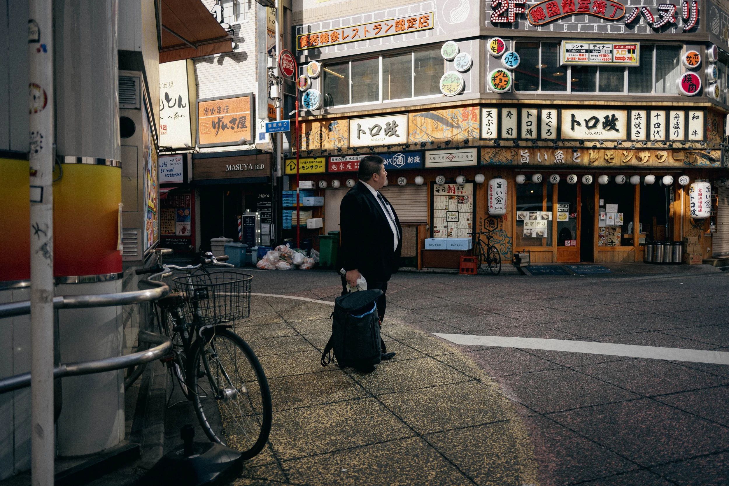 While everyone else was asleep? I headed back out. Compared to other Tokyo districts? Roppongi’s not the most exciting, but that’s not the point of street photography. I don’t need to feel inspired, give me empty lanes or crowded alleys, I knew if I get enough reps something might hit.