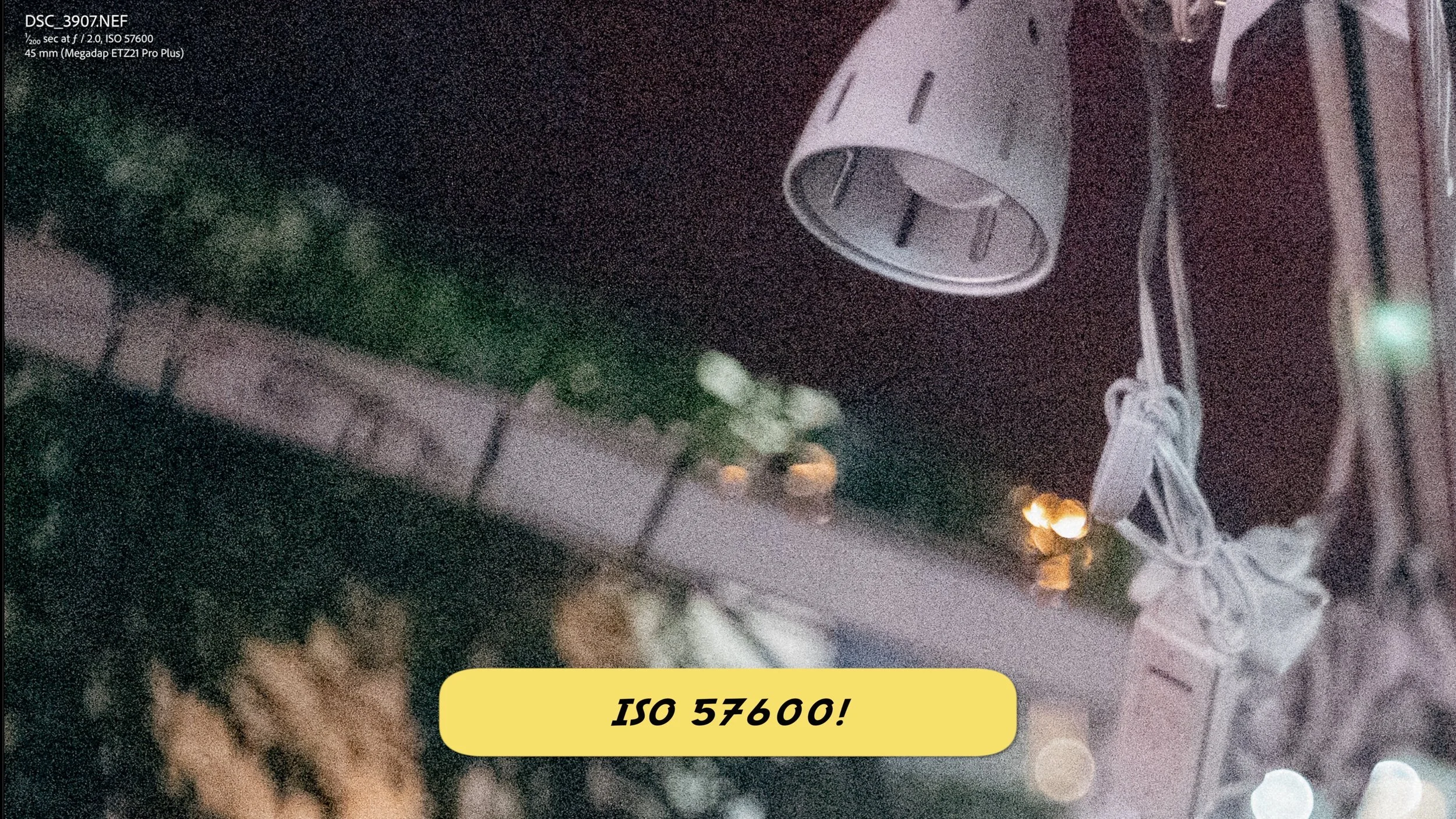 Nothing new for Nikon, which is to say amazing. Keeping the ISO low used to be my number one exposure priority, but now I don’t even think about it anymore? Noise reduction works well, the colors don’t break apart. Very well controlled, even at ISO 57600!