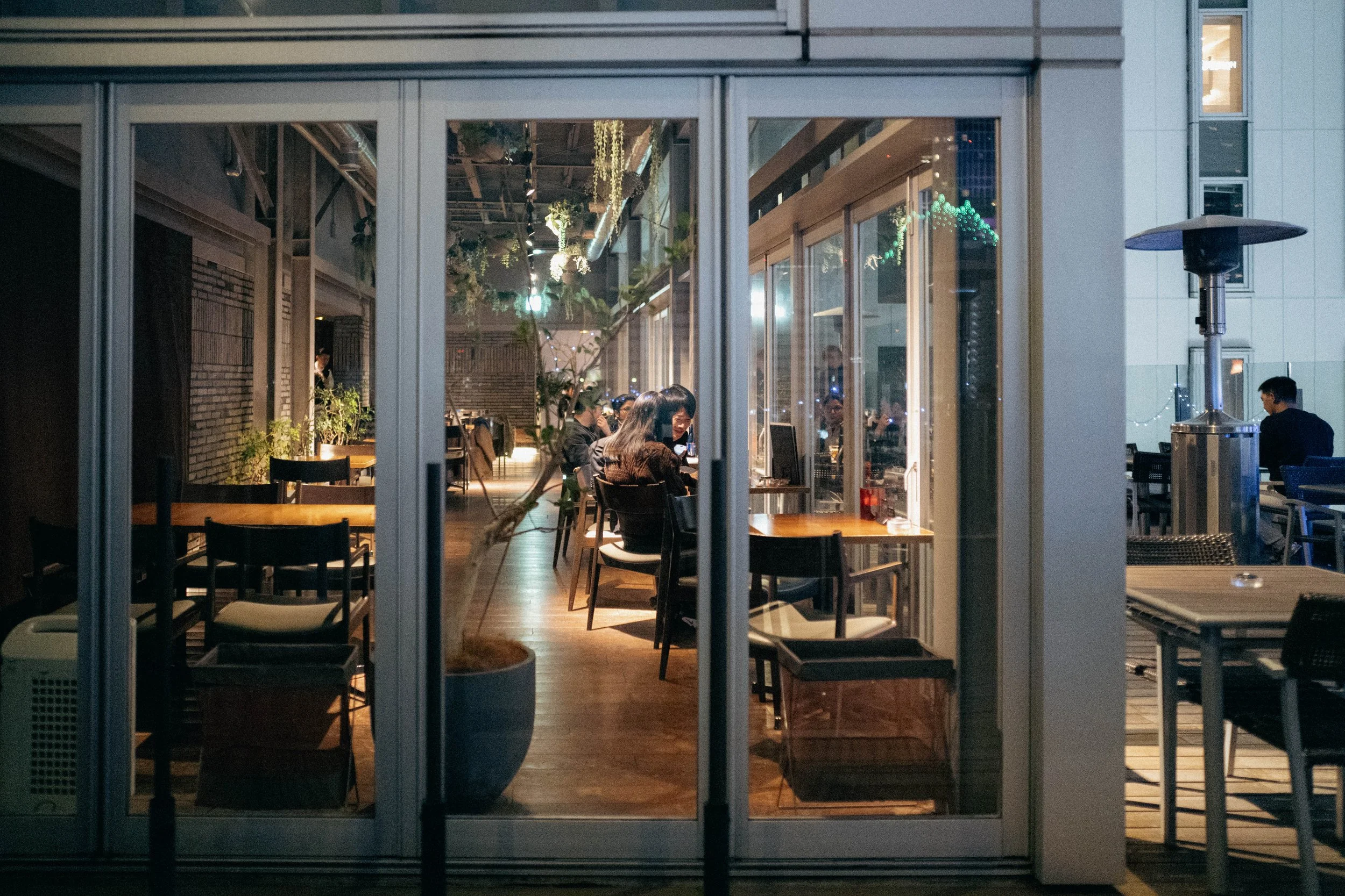 Massive screen again helps, this time with nailing focus. 28mm is wide enough to get most of the skyline view, but the people on their one last drink is more my speed.